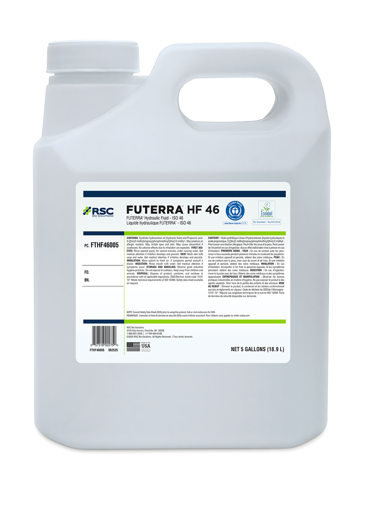 RSC Futerra™ HF 46 Hydraulic Fluid is the first of its kind. This renewable hydrocarbon EAL is designed to withstand extreme conditions and corrosion while operating in severe outdoor environments.