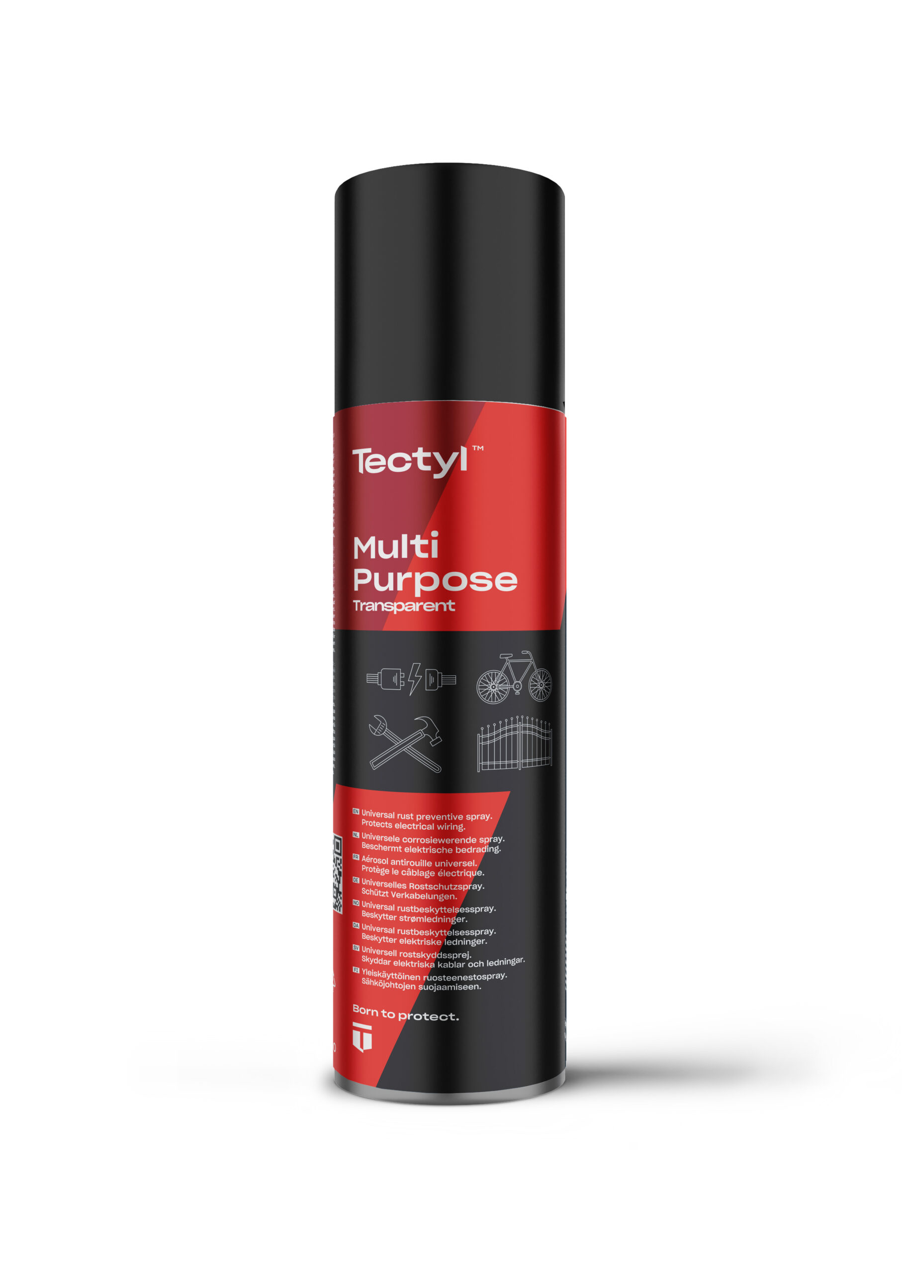 Tectyl™ Multipurpose Transparent is a solvent cutback, resin based, transparent, corrosion preventive. It has good water displacing properties and can be used as a versatile corrosion protective for a wide variety of applications on ferrous and non-ferrous metals: automotive, marine, household and Industrial like tools, chromium-plated parts (wheels of bicycles).